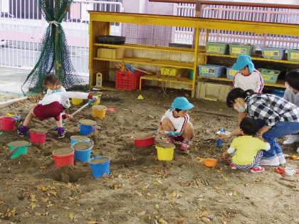 一緒に体を動かしたり、砂場で遊んだりしました。