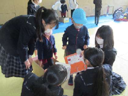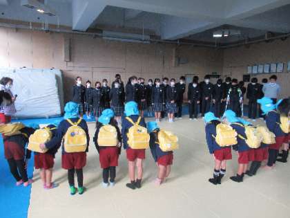 校門で出迎えてくれたお兄さんお姉さんに、緊張しながらも、挨拶をしました。
