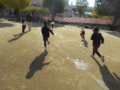 お楽しみ会終了後、園庭を見ると、そりの跡があるではないですか!!