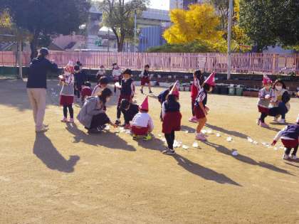 とっても忙しいサンタさんは、大急ぎで帰られました。「他の幼稚園も行かなあかんからなあ」話す子どもたち。