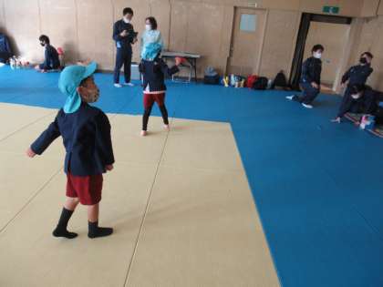 紙飛行機などの昔遊びのところでは、どうしたらよく飛ぶのか、飛ばし方を教えてもらいながらしてみる姿がありました。お兄さんが遠くまでとばすのを見て驚きながら、「自分もしたい」という気持ちになったようです。