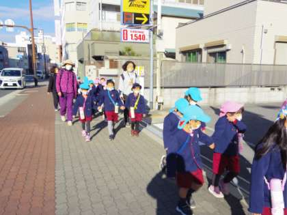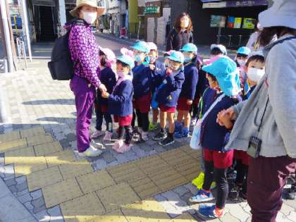 園外にでかけるときは、交通ルールやマナーを知らせたり確認したりする貴重な機会と考えています。