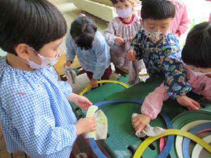 幼稚園のいろいろなところを大掃除。みんなでピカピカにしました。