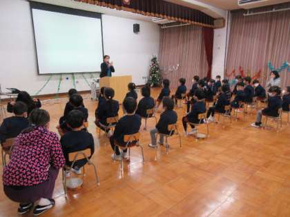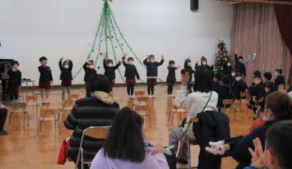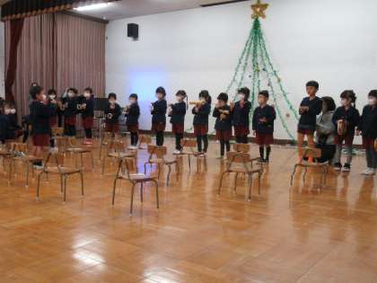 第2学期終業式 公開日 2023/01/04 更新日 2023/01/04 子どもたちの様子 12月23日(金)第2学期終業式を行いました。 2学期中に子どもたちに育まれたことについて話しました。 冬休みのやくそくについては、クイズ形式で確認しました。全問正解の子どもも多くてびっくりです。 その後、クラスごとに、歌や楽器遊びを保護者の方に見ていただきました。拍手をたくさんしてもらって、うれしそうでした。3学期も、楽しく歌ったり、楽器で遊んだりしましょうね。 いいね(0)