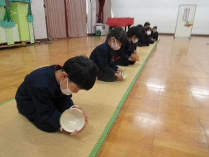 最後に、お茶の先生から、小学校に行ってからの願いや約束、「何十年も経って、おじいちゃん・おばあちゃんになっても、『九条幼稚園でお茶遊びしたね』と話ができたらいいですね」と話していただきました。