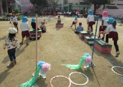 今日は、未就園児園庭開放『ひよこ』でした。5歳児そら組にとっては、最後のふれあいになりました。