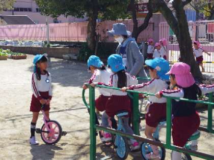 一輪車、難しいけれど、あきらめないで頑張っているね。