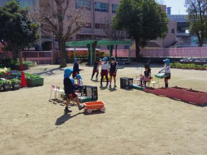 残り少なくなった幼稚園での時間。今日も、園庭で元気よく遊んでいます。