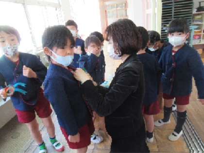 保護者の手作りのコサージュを胸につけてもらうと、いよいよ修了式が始まるんだという、いい緊張感が出てきました。