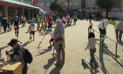 園庭開放を通して、自分より年下の友達と遊ぶ中で、「これはちょっと危ないかな」と、遊具の並べ方を考えたり、「こうしたらいいよ」と、相手に分かるように一緒にしたり、手伝ったり、遊具を譲ったりする子どもたちの姿が見られました。楽しい関わりの中で、優しさや思いやりの気持ちが育まれる良い経験ができたと思います。