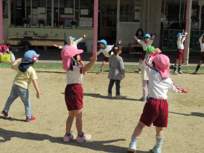 4歳児はな組の子どもたちと、預かり保育に参加している5歳児が一緒に遊びました。