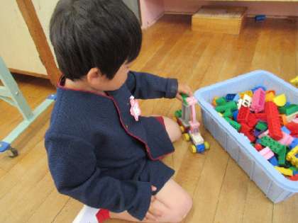 ブロックや電車遊び、ままごと、ビーズ通し、砂場やアスレチック、スクーターなど、やってみたいことを楽しんでいました。