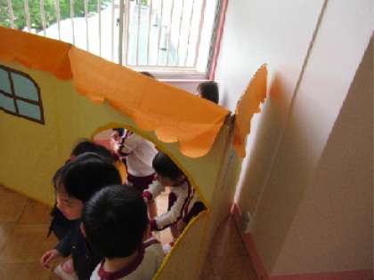 4歳児はな組が、幼稚園のいろいろな部屋を探検しました。