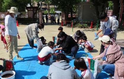 今日は、相談して決めた育てたい野菜の苗を植えたり、種を蒔いたりしました。