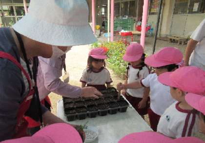 「どんな色の花かな?」「どんな大きさかな?」子どもたちは、楽しみにしています。