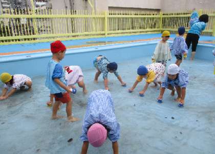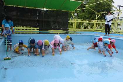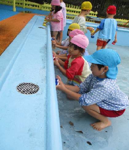綺麗になっていくプールに、「早くプールに入りたいな!」「もう今日入ってしまおうや!」「ホンマや!いいね!」と、友達と笑顔で話していました。