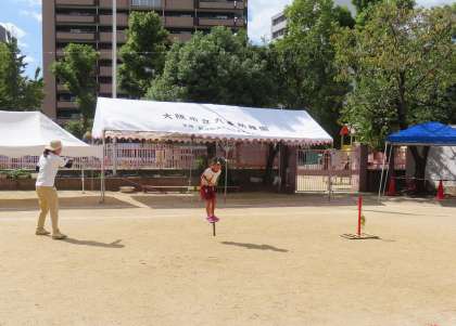 そらぐみ宇宙人は、ホッピングに乗って大縄跳びにも挑戦。