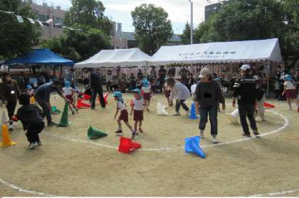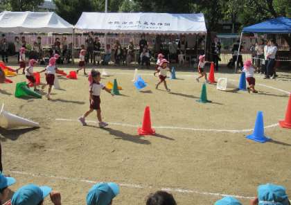 ※この遊びは、大阪トヨペット(株)様・大阪サッカー協会様のご協力で、サッカー遊びをしていただいたときの活動をヒントに考えました。子どもたちにとって、わかりやすく楽しい競技になりました。
