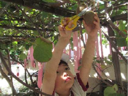 いつ収穫できるかなと楽しみにしていたので、うれしそう。真剣に選んでいました。