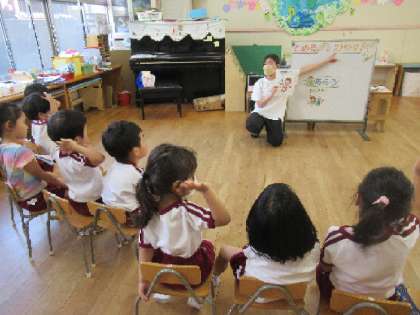 幼稚園でどのようなケガをしたことがあるのか問いかけると、「昨日、〇〇ちゃんとぶつかった!」「リレーしていてこけた」などの答えが返ってきました。