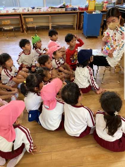 絵本を用いて、風邪の症状を振り返り、咳やくしゃみ・鼻水などは、体が風邪ばい菌を追い出すために戦っていることを知らせました。