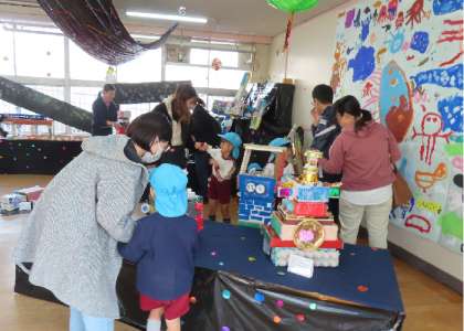 また、友達の作品についても、「これは、〇〇ちゃんので、ここは、こうなんだよ」と、次々と紹介していました。互いに手伝ったり、意見を言ったりしながら、一緒に活動してきたので、友達の作品のこともとてもよく知っているんですね。