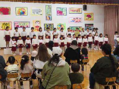 その後、「うたごえ ひびけ なにわっこ in 九条幼稚園」の一つとして、5歳児、4歳児が一緒に歌い、聴いてもらいました。こちらもうれしかったですね。今度は、五校園合同音楽交流会で、小学生や中学生のお兄さん、お姉さんにも、歌声を披露する予定です。
