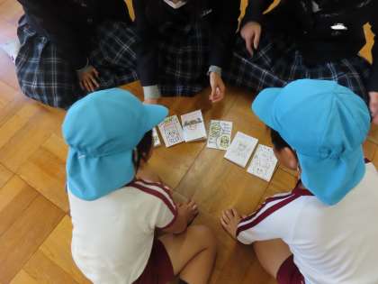 違うクラスのお兄さん、お姉さんでしたので、初めて会ったのですが、今年2回目の訪問で、子どもたちは少し慣れてきた様子で交流が始まりました。
