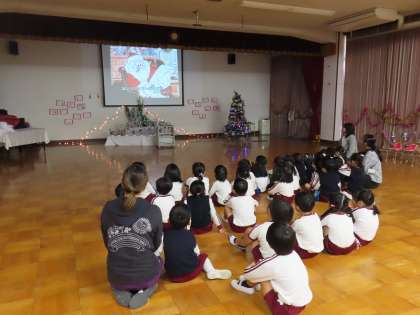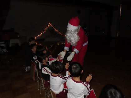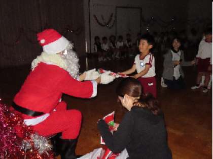 みんなで考えた質問をしたり、一人一人、直接プレゼントをもらったりして、子どもたちはとてもうれしそう。