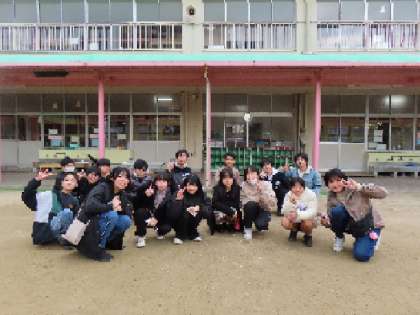 聞いてみると、九条幼稚園出身の中学2年生みなさんが、「幼稚園、懐かしい」「久しぶりにみんなで集まろう!公園集合」となったとのこと。せっかくなので、園内も見てもらいました。「ここに自分のかいた絵とか飾ってもらったね」とか「〇〇して遊んだ」とか、どんどん話していました。九条幼稚園の楽しかったことを覚えていて、懐かしく思ってくれること、そのときの友達がまだ友達であること、うれしかったです。これからも、園児の素敵な先輩方でいてくださいね。