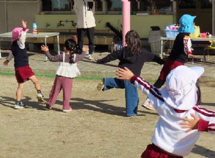 砂場やフープ、三輪車などで、元気よく、外で遊びました。