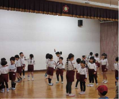 合奏は、音楽鑑賞会でオーケストラの演奏を見た経験から、一歩前に出て鳴らすことにしたり、鳴らし方(うち方)考えたりしていました。友達と「バッチリー!」と褒め合いながら、日々、好きな楽器を交代し合って遊んできて、今では、「どれでもできる!」そうです。クラスのみんなで、気持ちや音を合わせて演奏する楽しさを感じていました。