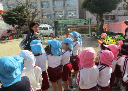 5歳児には、事前に避難訓練をすることを知らせずに行いました。子どもたちは、これまでの経験から自分なりに考えて、行動する姿が見られました。