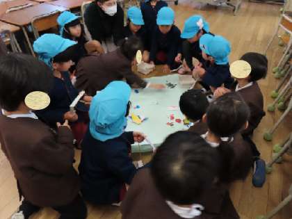 本田小学校1年生との交流に5歳児そら組がでかけました。