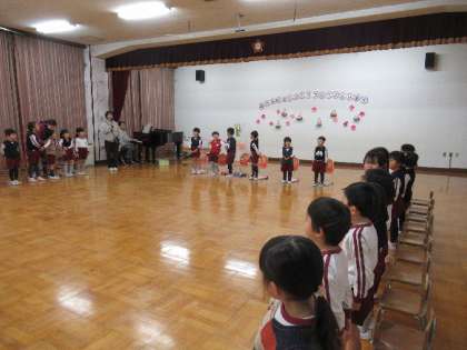 誕生会1 公開日 2024/03/01 更新日 2024/03/01 子どもたちの様子 今年度最後の誕生会でした。 待ちに待った誕生児たちは、お家の方と入場し、うれしそうです。 周りのみんなも、笑顔で迎え、たんじょうひをお祝いする誕生児 自己紹介では、名前、年齢、誕生日、「大きくなったら…」や「好きな食べ物」などを、話しました。そして、お家の方からのメッセージや、誕生カードをもらいました。カードにある自分の手形に、手を合わせてみる姿もありました。 いいね(0)