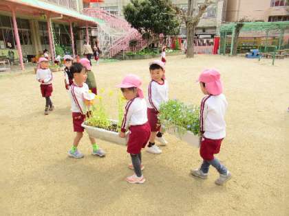 いよいよ明日は修了式。そら組が、最後に通る花道もつくりました。重いプランターも、友達と協力して、運んで、通ってみた感じも確認して、明日に向けての準備もばっちりです。