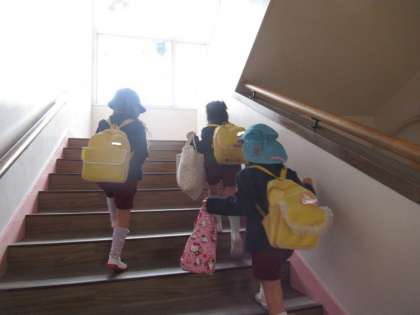 今日から大きい組! 第1学期始業式1 公開日 2024/04/10 更新日 2024/04/10 子どもたちの様子 令和6年度 第1学期が始まりました。 今日から、大きい組のそら組になった子どもたち。 自分の青い名札を見つけ、お家の方に胸につけていただいて、思わずニコッ。 「お部屋、2階やで」「荷物、自分で持っていけるよ」と、言いながら2階の保育室へ。 なんだか、足取りも軽く、うれしそう。 いいね(0)