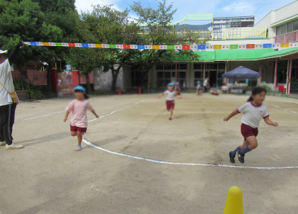 今日は、全園児で運動会ごっこ(予行)をしました。普段から一緒に遊んでいるので、相手の組が何をしているか、知っていることも多いですが、じっくり見て、応援したり、準備や片付けの手伝いをしたりしながら、するのも見るのも楽しんでいました。明日も、一緒に運動会ごっこをします。体を存分に動かすことを楽しみ、友達の応援もして、運動会当日が楽しみになるようにしていきたいと思います。