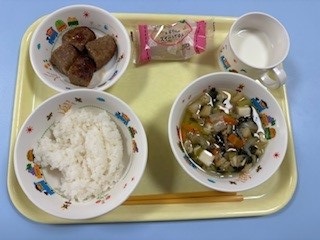6日 … 和風ハンバーグ 五目汁 スイートポテト ごはん 牛乳