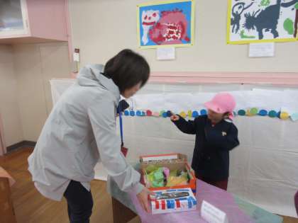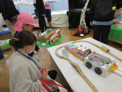 今日はそんな作品をお家の人に見てもらえるということで、子どもたちは朝からわくわくしている様子でした。