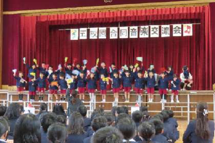 九条北小学校で、五校園合同音楽交流会が開催されました。