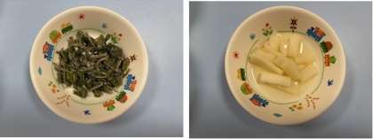 じゃこピーマンは、ピーマンが目立つのでどんな感じになるかと思いましたが、思いのほか、ご飯にのせるなどして箸が進み、おかわりをする子どもも多かったです。かぶの柚子風味は、これは何だろう?という表情で、初めて食べる感じの子どもたちもいました。