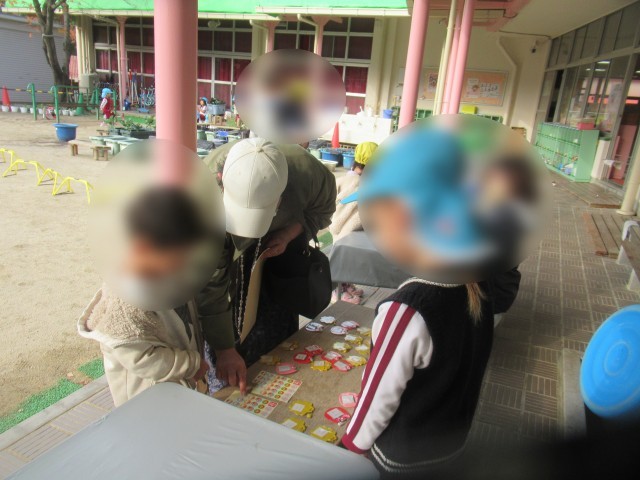子どもたちが用意した場で遊んだ小さなお友達に、手作りのお金をプレゼントする様子も(^^)/