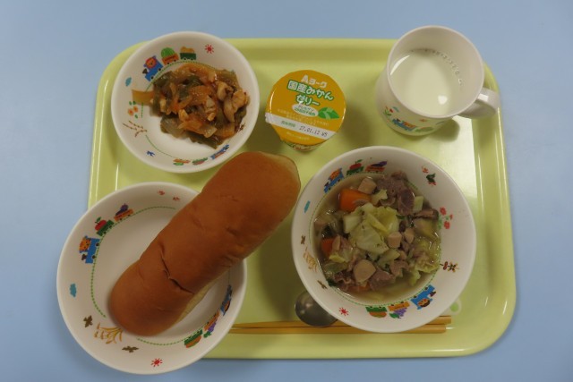 16日 ‥ ポトフ 鶏肉と野菜のケチャップソテー みかんゼリー 黒糖パン 牛乳