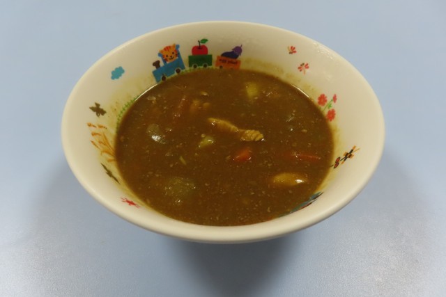 大好きなカレー 今日はチキンカレーです。子どもたちは給食室から漂う香りから楽しみにしていました。ごはんのお椀にかける子ども、スプーンですくっては ご飯にかける子ども、別々に口に運ぶ子ども、食べ方は様々ですが、おいしくいただきました。ごちそうさまでした!