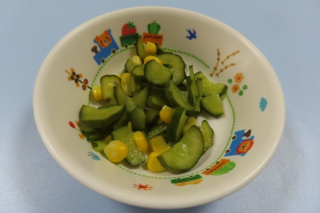26日 ‥ チキンカレー きゅうりとコーンのサラダ みかんゼリー ごはん 牛乳