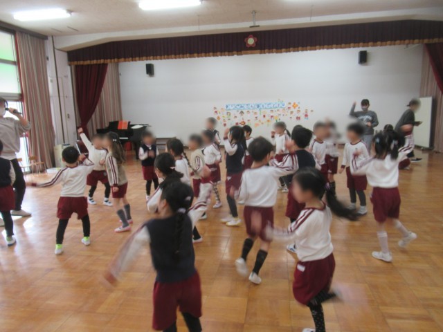 ゲームの次は『♪たたタッチ』の曲に合わせて体を動かして遊びました。いろいろ友達やいろいろな先生とタッチして、とても嬉しそうでした。