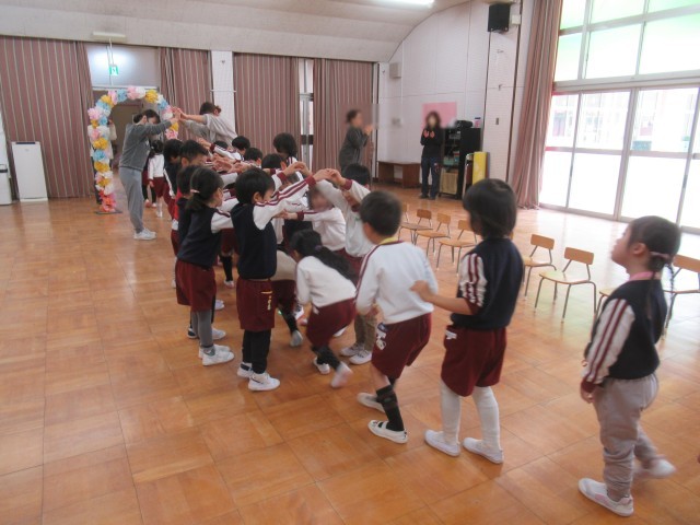 最後は、はな組が花道(トンネル)をつくって、その間をそら組がくぐって退場しました。