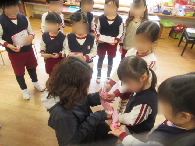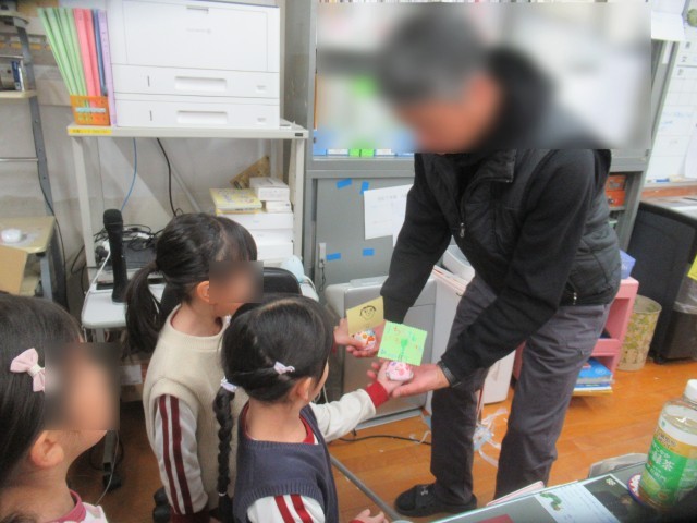 今までお世話になった教職員に、手作りのプレゼントを持って、お礼を言いにいきました。