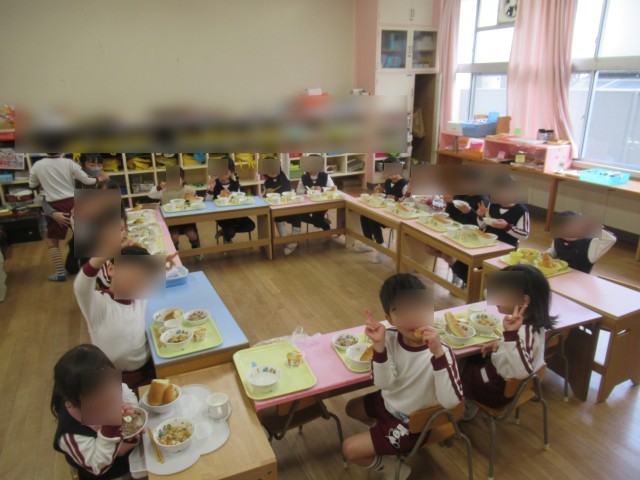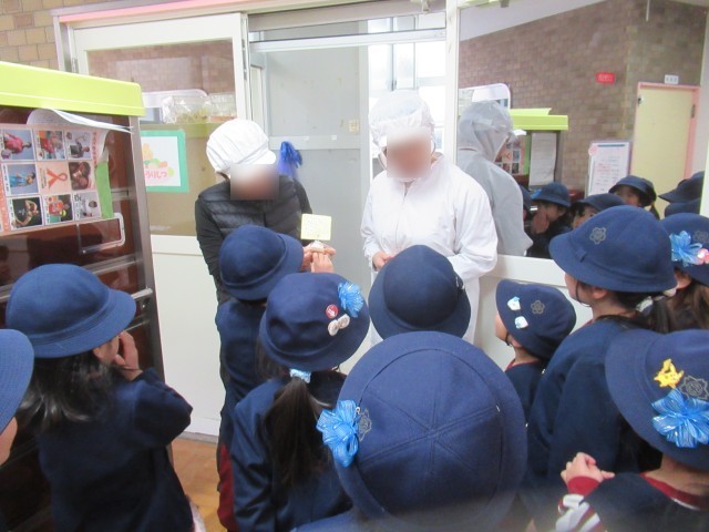 給食も、今日で最後。みんなの顔を見ながら、楽しく食べました。給食をつくっていただいた調理員さんにも、お礼を言いにいきました。